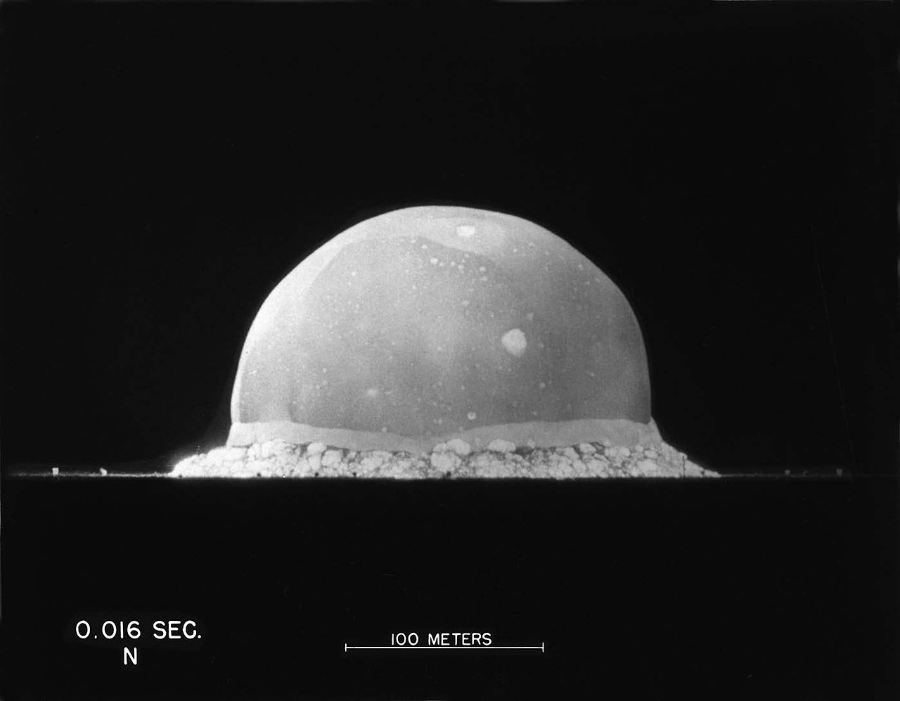 1945년 7월 16일 뉴멕시코 사막에서 실행된 미국의 Trinity Test에서는 약 20Kt급 플루토늄 핵폭탄을 사용한 바 있다. 이때 관측된 데이터를 보면, 화염구는 폭발 직후 급격히 팽창하며, 약 40 밀리초(0.04초) 내외로 최대 직경(약 350m)에 도달했음이 기록되어 있다.