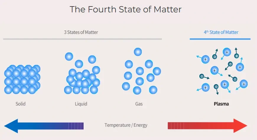 - 플라즈마는 원자를 구성하는 전자와 핵(양성자, 중성자)이 분리되어 각각 독립적 입자로 존재하는 이온화 기체 상태로, 물질의 제4상태로 불린다.