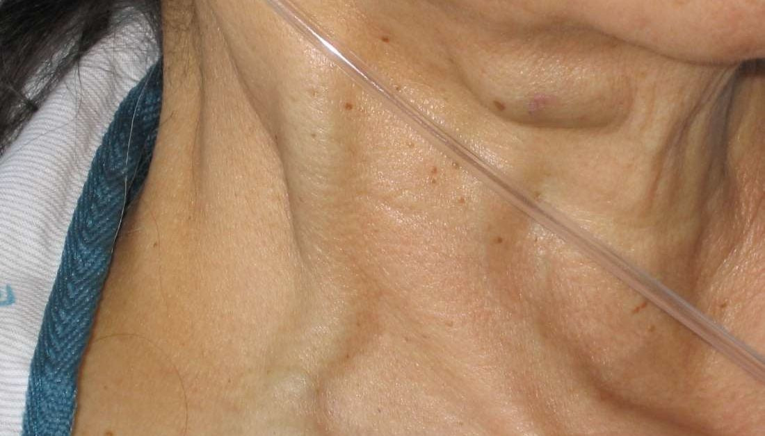 - 경정맥 돌출(Jugular vein distention, JVD): 흉부 내 압력이 증가하면 경정맥(Internal jugular vein)이 돌출될 수 있음. 병리학적으로는 다음과 같이 표현할 수 있음: