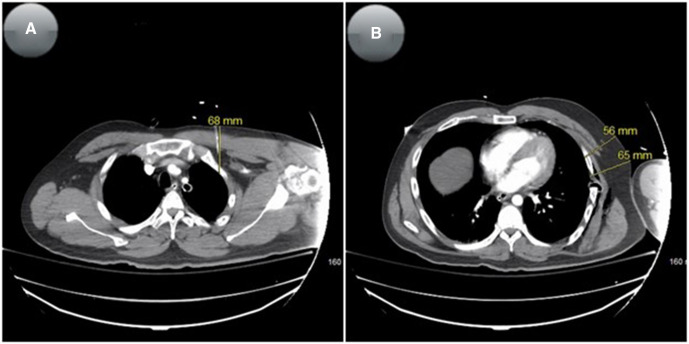 - Givens ML, Ayotte K, Manifold C. Needle thoracostomy: implications of computed tomography chest wall thickness. Acad Emergency Med 2004;11:211–3.