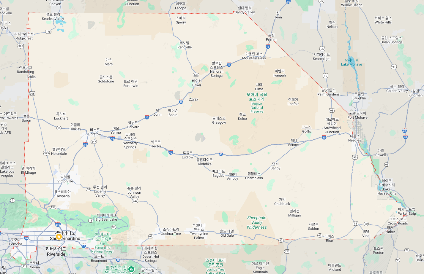 찾아봤는데, ARMC (Arrowhead Regional Medical Center)가 위치한 San Bernardino County가 상당히 넓었다. 적색 점선 경계로 표시된 저기가 SBC임.