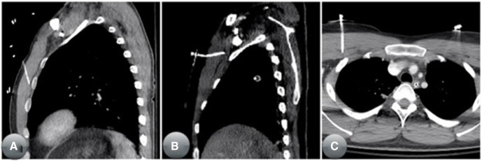 병원 전 외상 환자에서의 응급 바늘천자 흉관삽입술: CT 촬영을 통한 술기 시행 검토