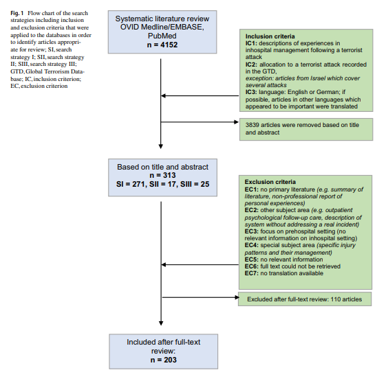 - Friemert B, Achatz G, Hoth P, et al. Specifcities of terrorist attacks: organisation of the in-hospital patient-fow and treatment strategies. Eur J Trauma Emerg Surg. 2020;46(4):673–82.